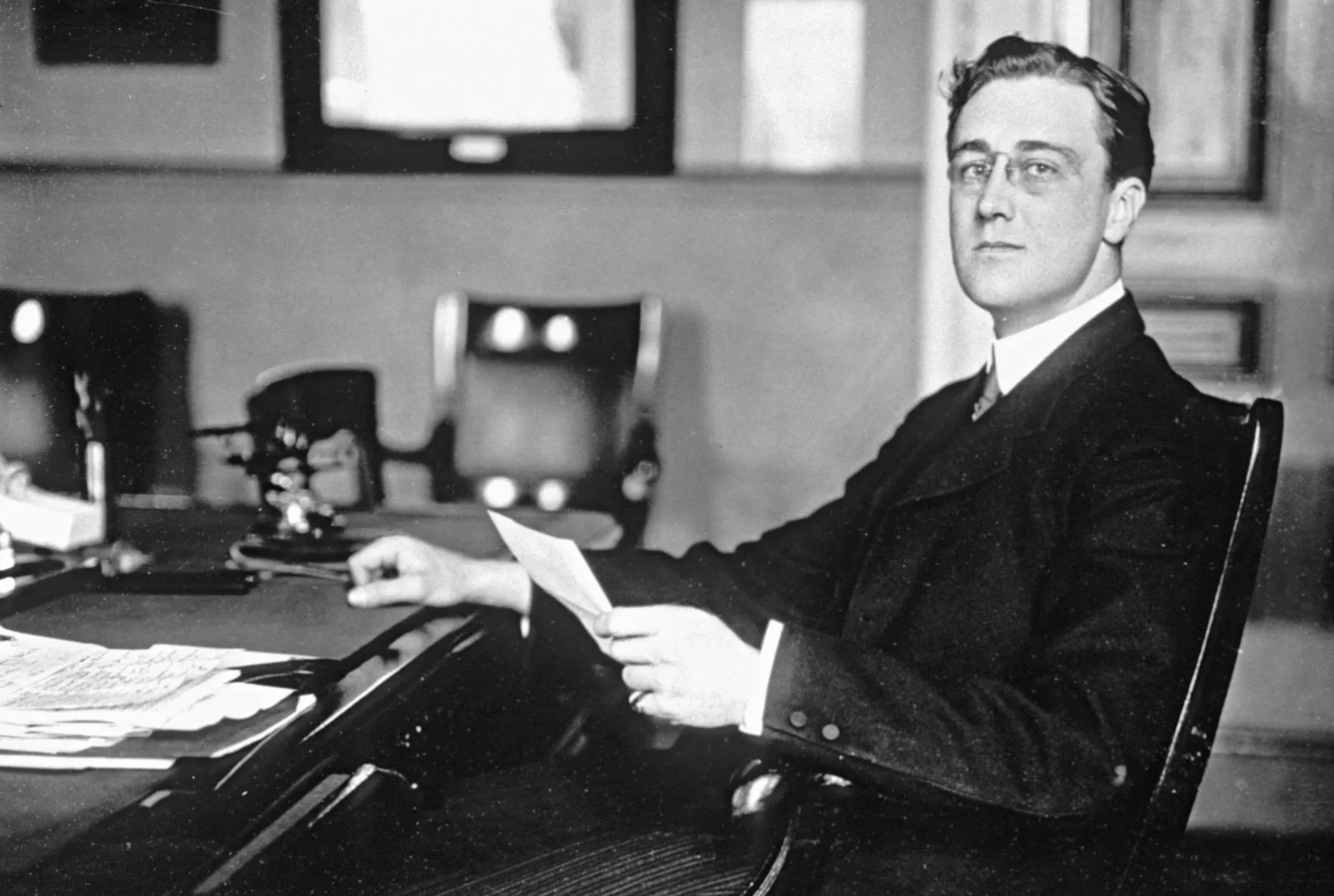 One of Roosevelt’s key focuses was the the ongoing farm crisis of the 1920s, as well as major public works projects, like the construction of hydroelectric power plants. In 1928, FDR also began his legendary “fireside chats” where he directly addressed his constituents via radio, often pressuring the New York State Legislature to advance his agenda. All of these skills would come in handy for the next step he was about to take.