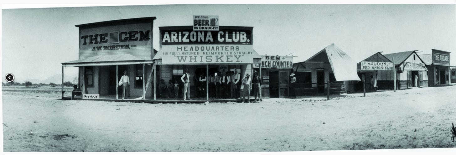 In 1905, Clark organized an auction of his landholdings near the new railroad depot and station café, which included the town’s first casino. The auction, heavily advertised in the railroad’s two terminal cities, far exceeded Clark’s expectations and resulted in the sale of nearly every available lot. Clark used a portion of the proceeds to build a pipeline from the springs to the depot and dig a well, which would assure a steady water supply for the new town. He also helped fund the construction of secondary rail lines to the mining towns of Tonopah and Goldfield.