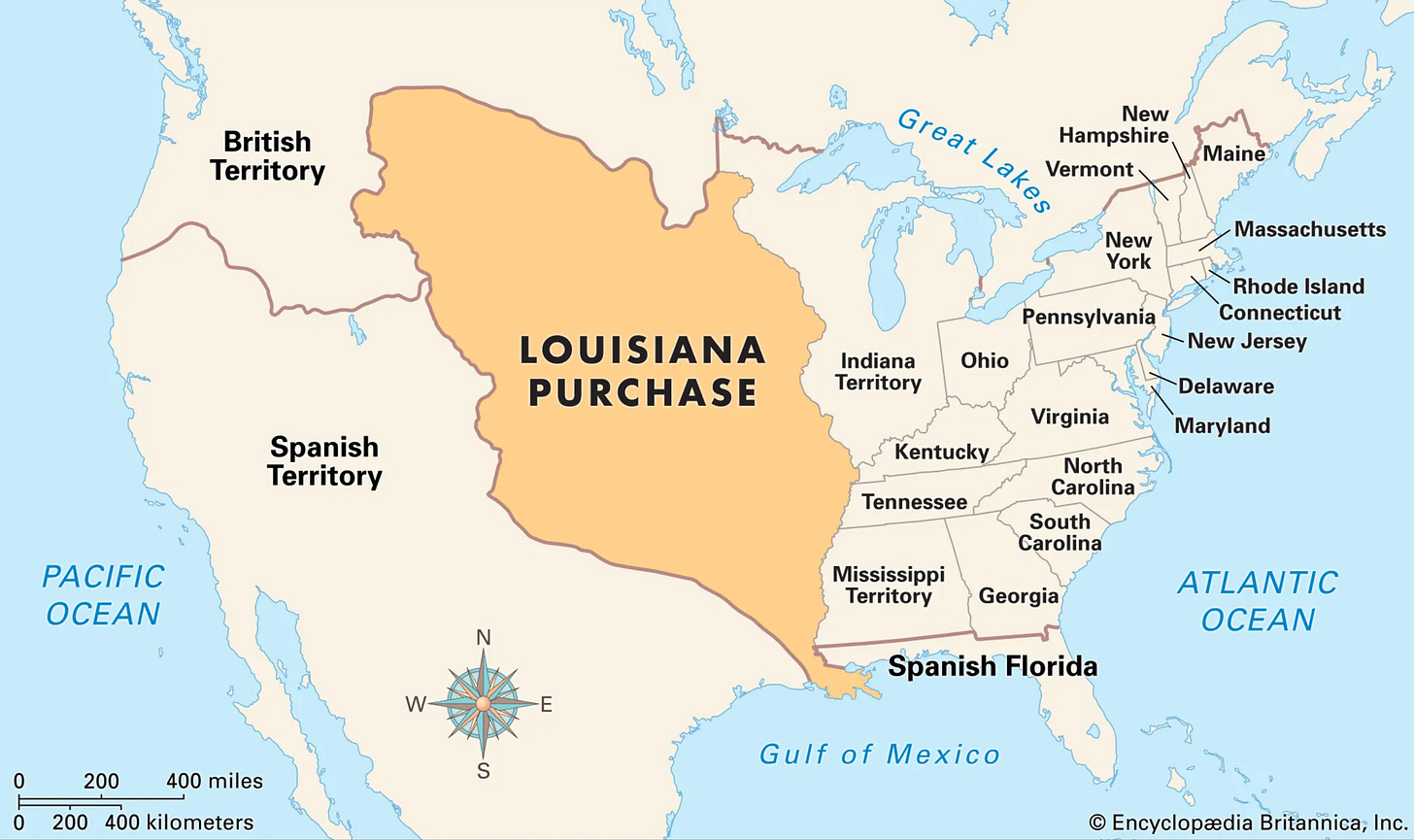 The American purchase from France of the vast, ill-defined area west of the Mississippi in 1803 disrupted the lives of the inhabitants of New Orleans and the surrounding countryside to a much greater extent than had the previous period of Spanish rule.