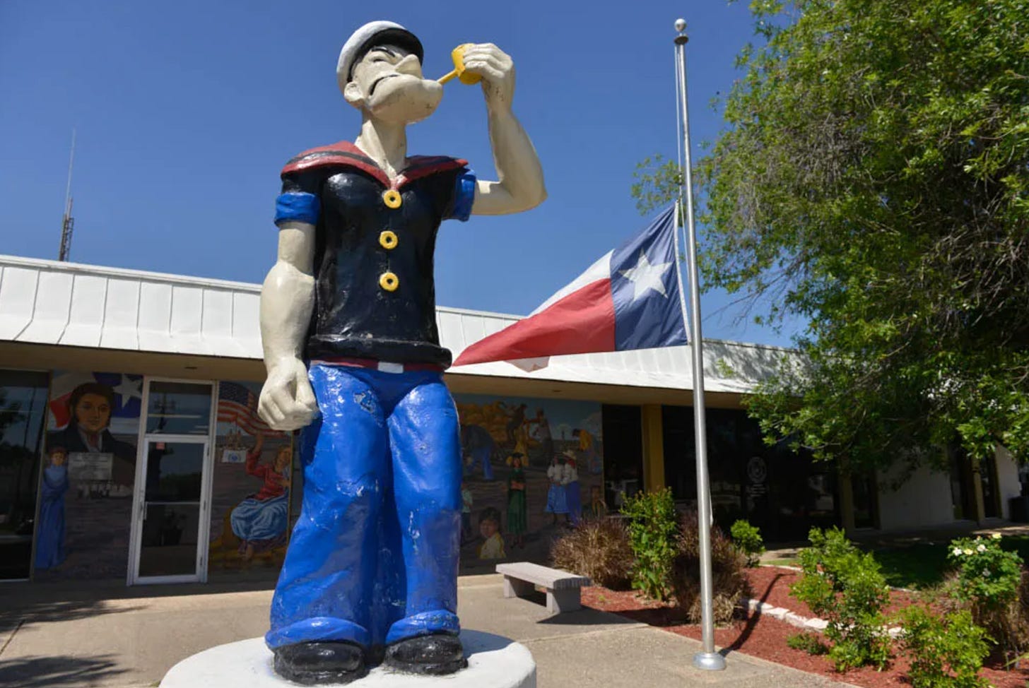 Thanks to the help Popeye gave the spinach industry, Crystal City, Texas erected a statue of him in 1937