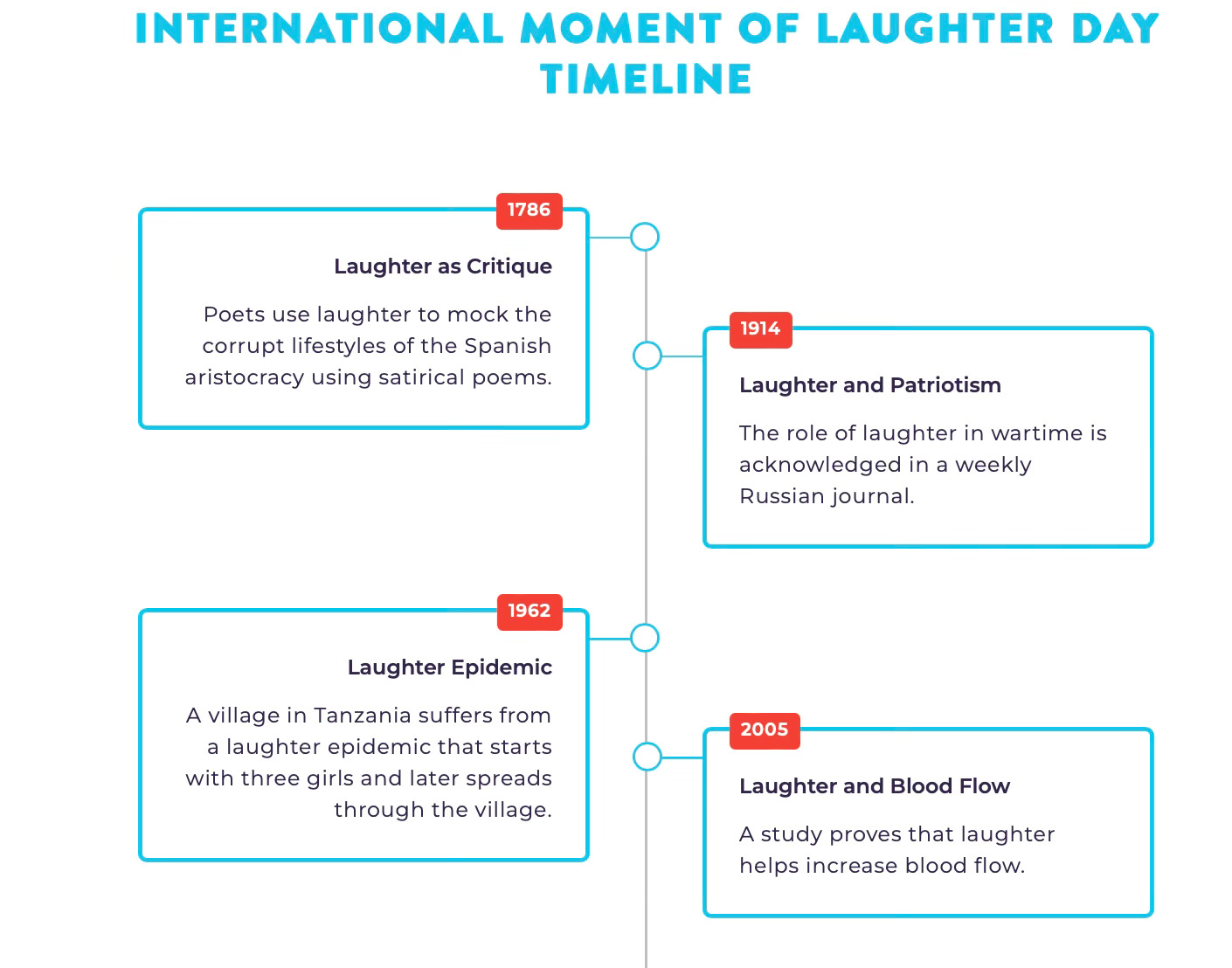 Laughter, often described as the best medicine, positively affects our health. International Moment of Laughter Day was initiated to improve our perspectives. Laughing has proven beneficial to combat anxiety too. As the holiday’s originator himself said, “It relieves stress, instills optimism, raises self-confidence, defuses resistance to change, and enhances all your relationships.”