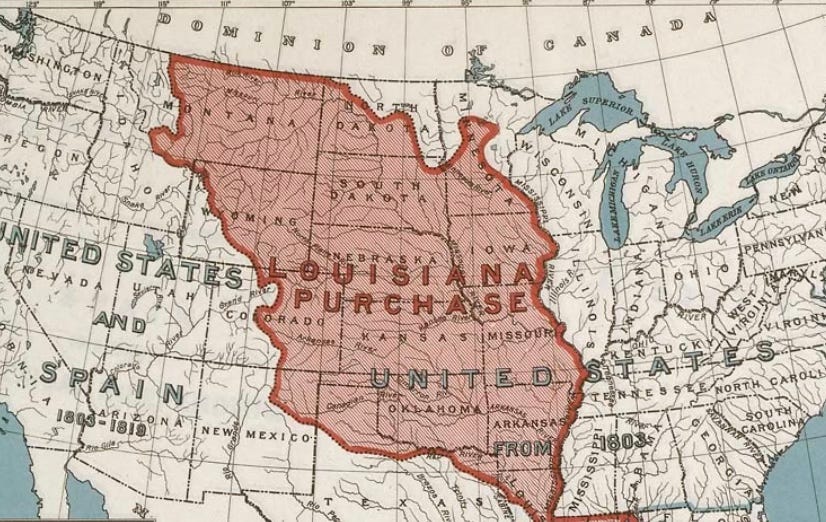 The Louisiana Territory was large, some 828,000 square miles on the western side of the Mississippi River. Back when seafaring European powers like England, France and Spain were running rampant across the Americas and the Caribbean, France controlled this area starting around 1682.