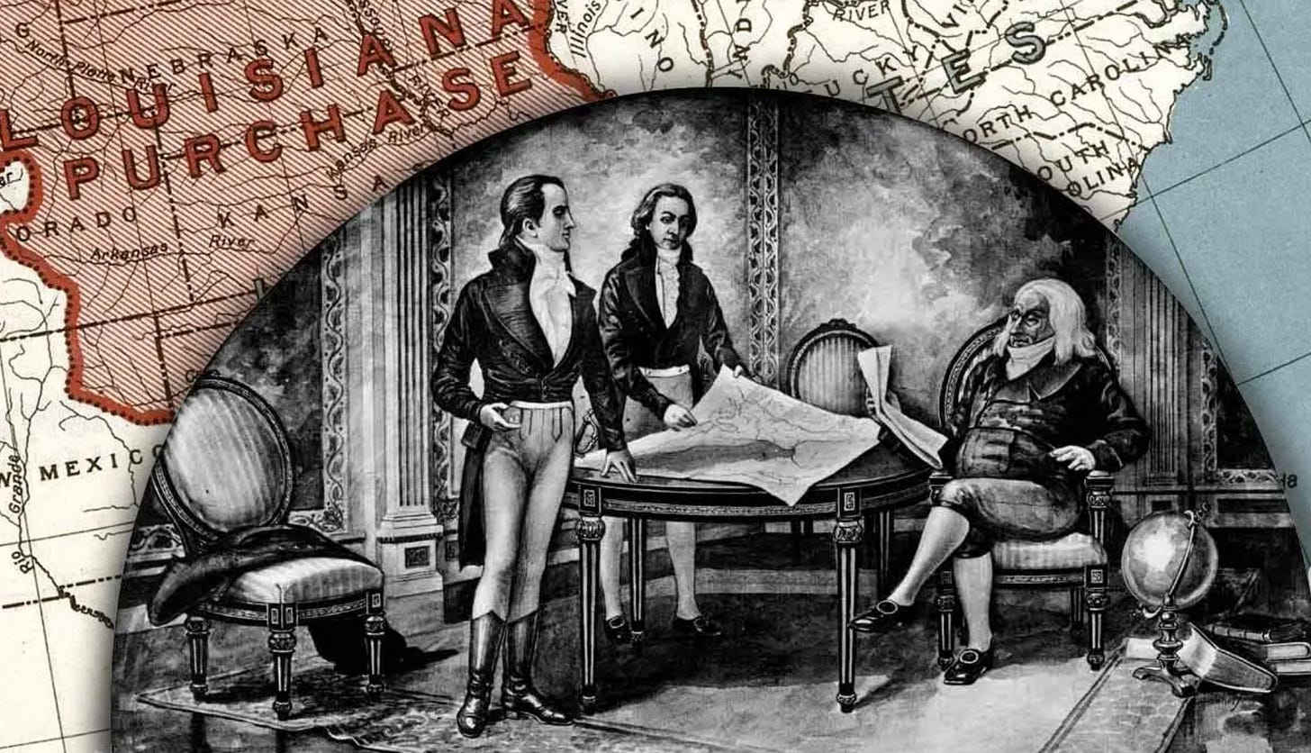 In 1762, France ceded the area that was included in the Louisiana Territory to Spain. But in 1800, Napoleon regained the Louisiana Territory in exchange for Tuscany, as France was pining for a North American presence. Those plans for a North American empire, however, didn’t go so well for Mr. Bonaparte. He was unable to suppress the Haitian Revolution, an insurrection by the self-liberated slaves there, many of whom descended from the natives who’d been there before the Europeans arrived. Simultaneously, Napoleon was worried about renewed warfare with the United Kingdom. That prompted him to think about selling Louisiana to the U.S.