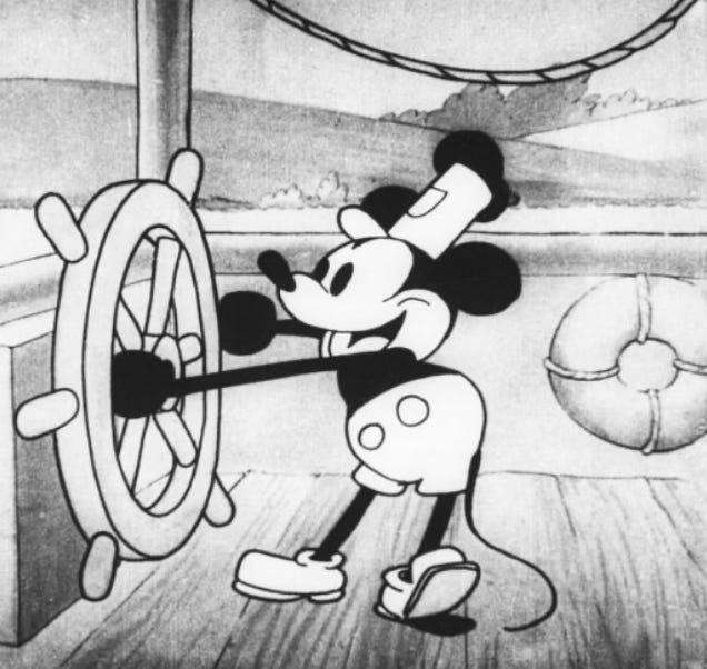 It was on this day in 1928 that Walt Disney released his first animated short film with synchronized sound, a cartoon called Steamboat Willie, featuring a character named Mickey Mouse, along with his girlfriend, Minnie Mouse.