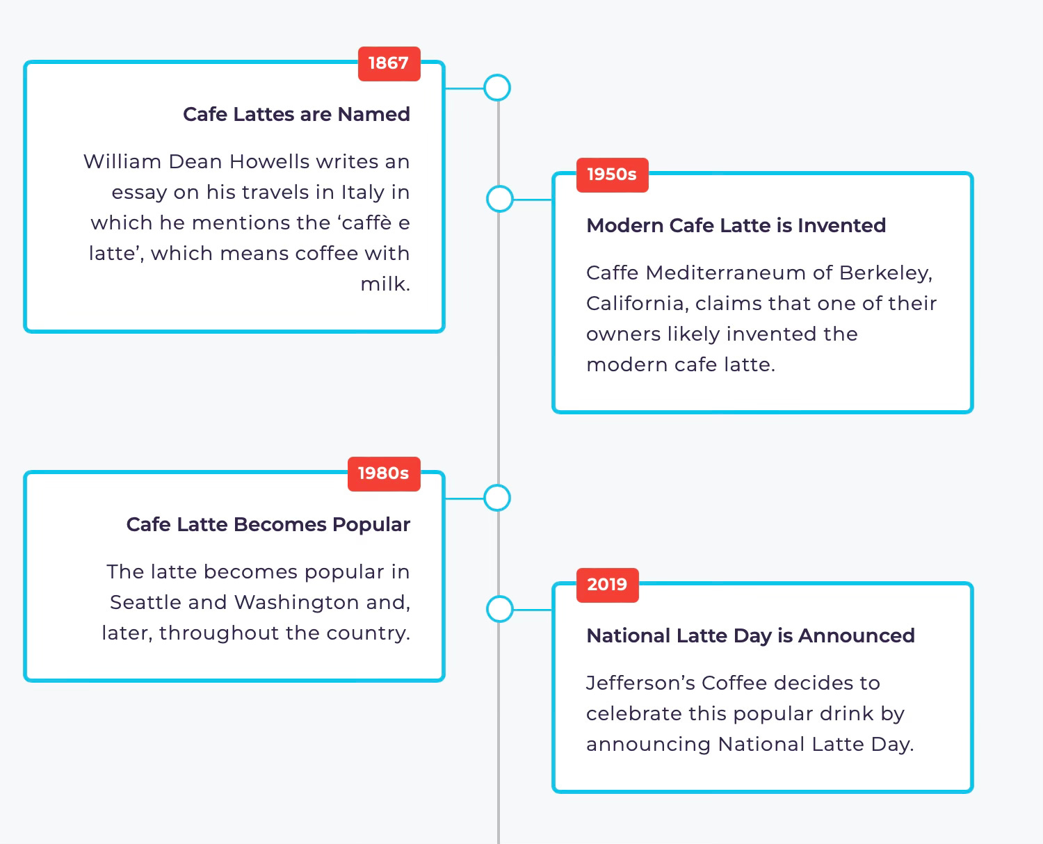 While the cafe latte has been a part of European cuisine since the 17th century, it was only towards the end of the 20th century that it started making appearances in coffee houses elsewhere. While Caffe Mediterraneum of Berkley, California claimed they brought the caffe latte to the U.S. in the 1950s, the modern variation of the cafe latte - or just latte - was likely invented in the Pacific Northwest of the United States. It was popularized in Seattle, primarily by Starbucks, and spread widely as other coffee chains sought to compete.